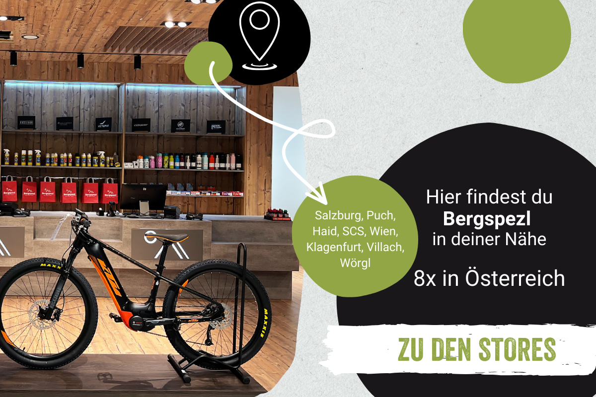 Teste die Premium E-Bikes im Bergspezl Store in deiner Nähe und lass dich von unseren Experten persönlich beraten. Oder stöbere ganz entspannt in unserem Onlineshop.