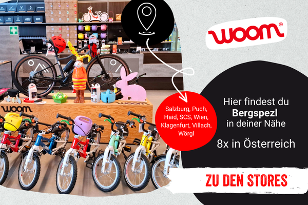 Besucht uns im Bergspezl Store in eurer Nähe, testet die Räder und macht gemeinsam eine Probefahrt! Unsere Experten helfen dir, das perfekte Fahrrad in der richtigen Größe zu finden. Oder bestelle jetzt bequem im Onlineshop und lass dir das Geschenk direkt nach Hause liefern.
