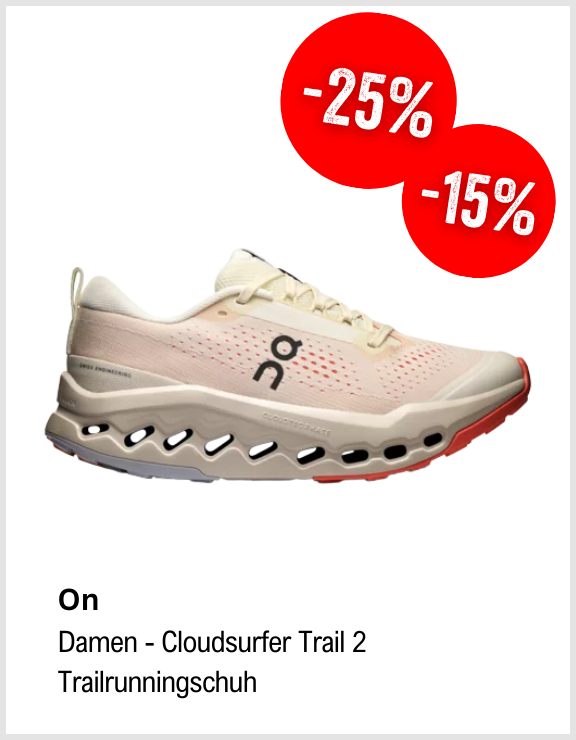 *Aktion gültig von 20.03. bis 22.03. im Bergspezl Onlineshop auf lagernde HOKA und ON Schuhe. Der Rabatt bezieht sich auf den letzten gültigen Verkaufspreis. Nicht mit anderen Rabatten kombinierbar.