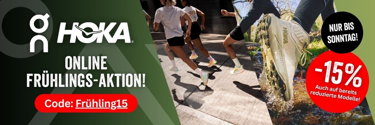 Nur dieses Wochenende: -15 % auf Schuhe von den Marken Hoka und On*. Sogar auf bereits reduzierte Modelle! Ob wasserfest für wechselhaftes Frühlingswetter oder für sportliche Tage ohne Regen. Du findest genau den Schuh der zu dir passt.